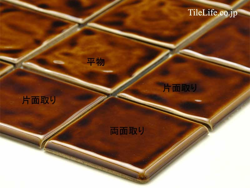 - 役物タイル 両面取り 100角 ブラウン系