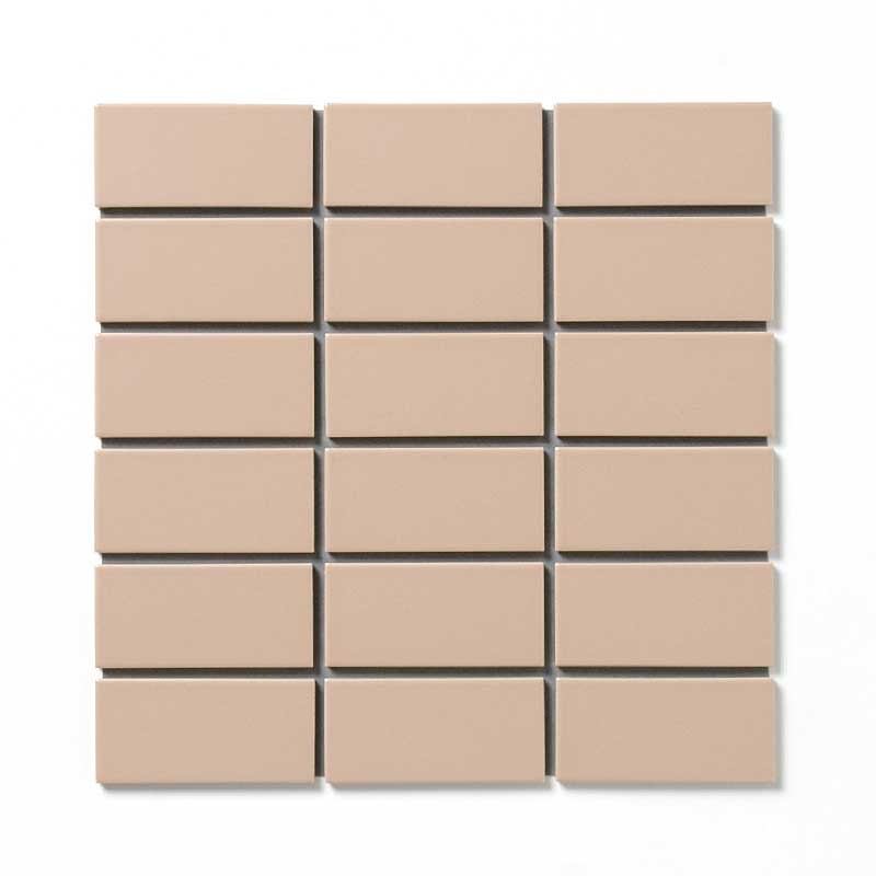 マット釉を使用したシンプルなモザイクタイルです。 <注意点> ●多少の寸法誤差がありますので、調整しながら施工願います。 ●裏あし形状はあり状です。 ●単色タイルです。 ●表紙張りユニット品のため、タイル表面には糊が残ります。必ず紙剥がし後は、表面の糊を除去してください。