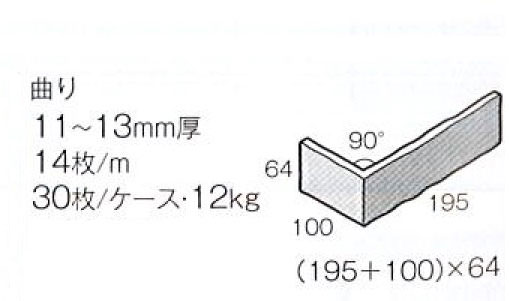 90°曲がり:(195+100)×64×10〜13mm ラフな商品の為、大きな寸法誤差があります。 |