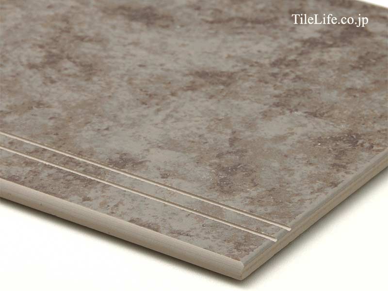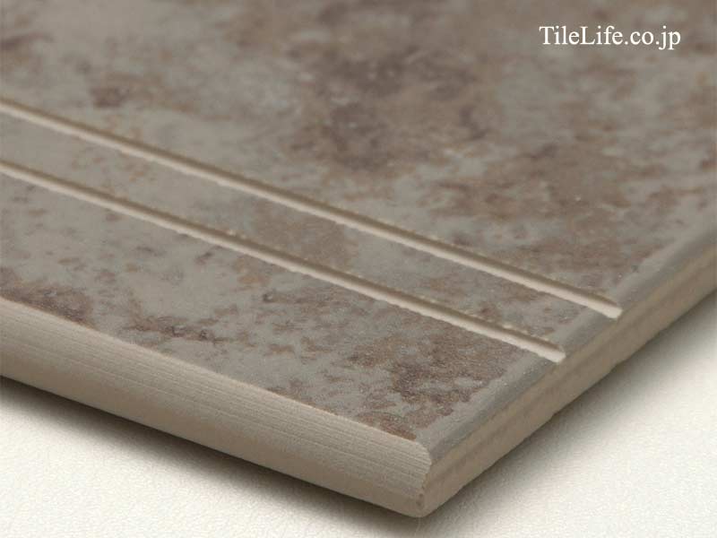 平物にすべり防止の溝を入れ、エッジを面取り加工した階段タイル(段鼻タイル)です。