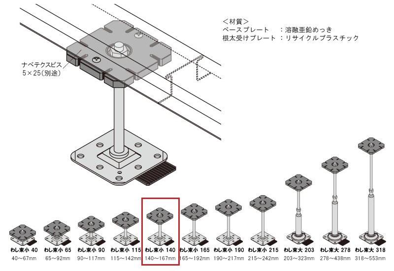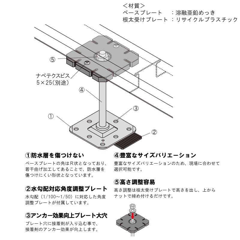 ベースプレート:溶融亜鉛メッキ根太受けプレート:リサイクルプラスチック |