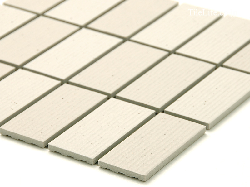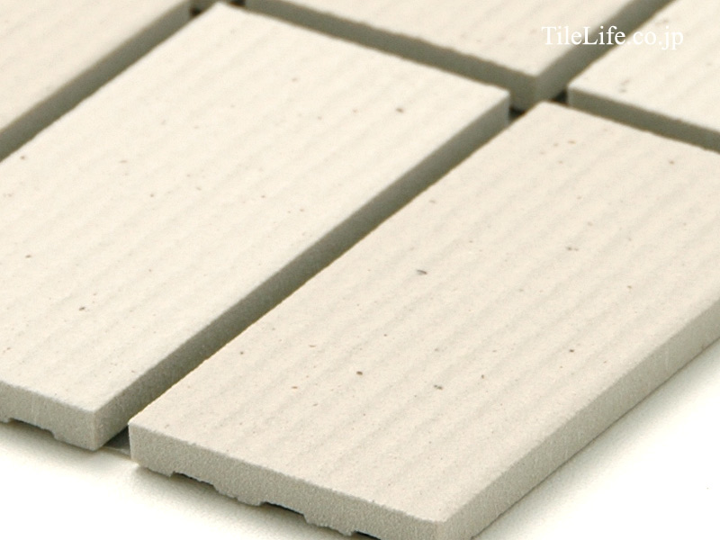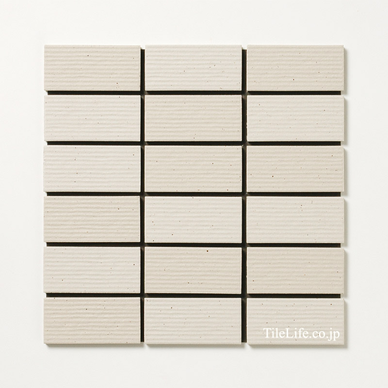 白系横筋面状の2色MIX 外装モザイクタイル。