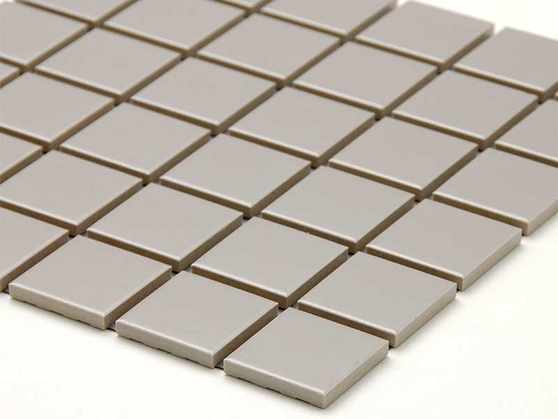 マット釉を使用したシンプルなモザイクタイルです。 <注意点> ●多少の寸法誤差がありますので、調整しながら施工願います。 ●裏あし形状はあり状です。 ●単色タイルです。 ●表紙張りユニット品のため、タイル表面には糊が残ります。必ず紙剥がし後は、表面の糊を除去してください。
