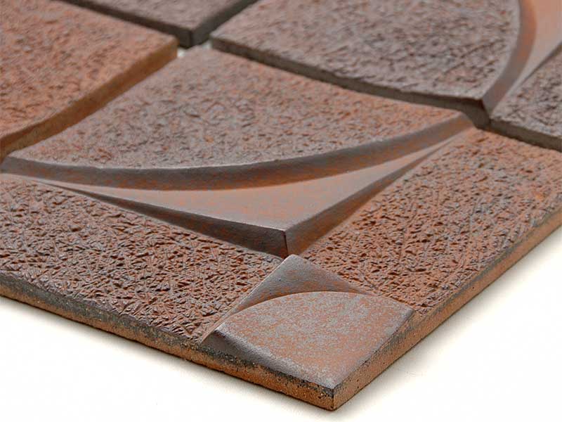 大きい色ムラが素敵な細かなテクスチャーをほどこした装飾タイル。 組み合わせ方によって、色々な模様がお楽しみいただけます。 時の経過を感じる自然なやきもの独特の色幅が魅力です。 <注意点> ●多少の寸法誤差がありますので、調整しながら施工願います。 ●自然な色幅がありますので施工の際は、箱からすべて取り出し、混ぜて施工することをお勧めいたします。