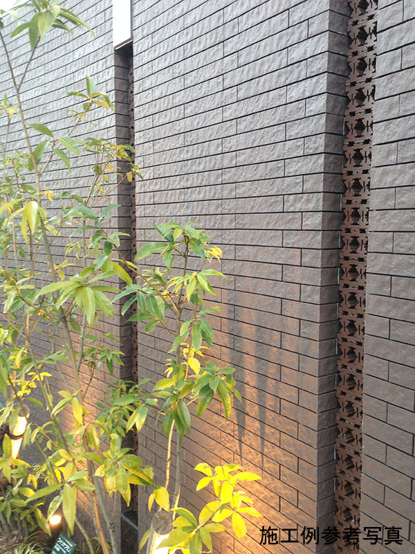 玄関アプローチ、袖垣に両面に1枚レンガ貼りとして使用。