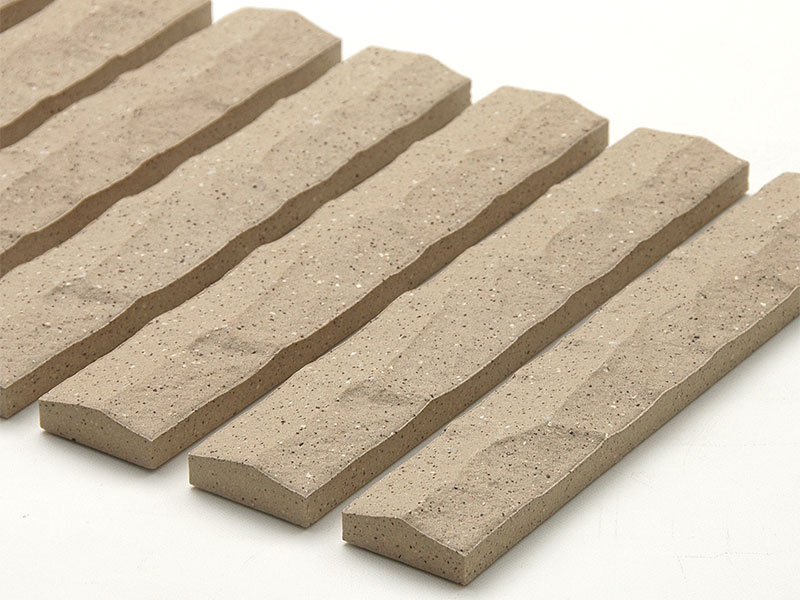 使いやすい無釉のボーダータイル。 ハツリ面状です。