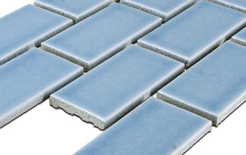 貫入を施した淡いブルーの色彩がさわやかに空間を演出する壁面タイルです。