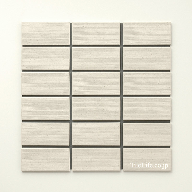 白色の細かい横筋面状の45二丁タイルです。