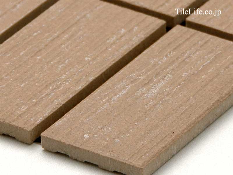 - 外装モザイクタイル 45二丁複数横ライン面スダレ貼り 薄茶系