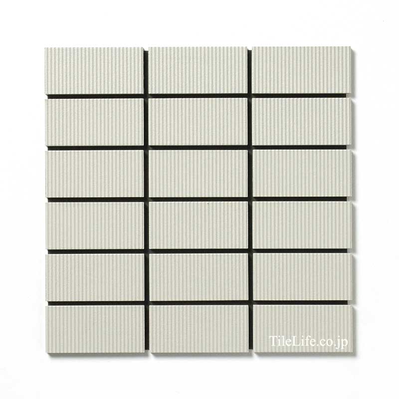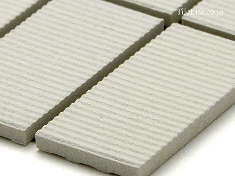 - 外装モザイクタイル 45二丁縦筋面スダレ貼り 薄グリーン系