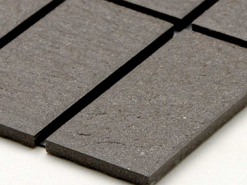 無釉特有の質感があり、光の当たり具合で変化する面状が、シンプルながらも個性的な雰囲気を演出する外装モザイクタイルです。