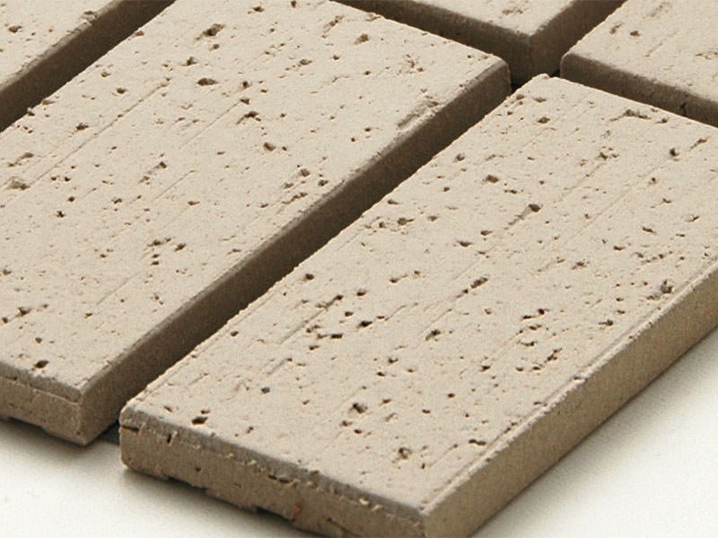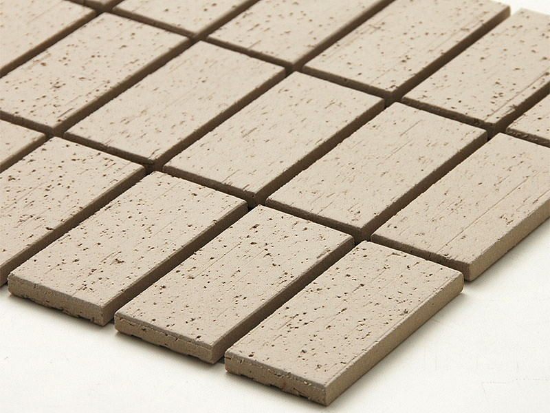 外装モザイクタイルはプレス成型されたタイルがほとんどですが、このタイルは押出成形という、二丁掛タイル(ブリックタイル)と同じ製法で作られています。