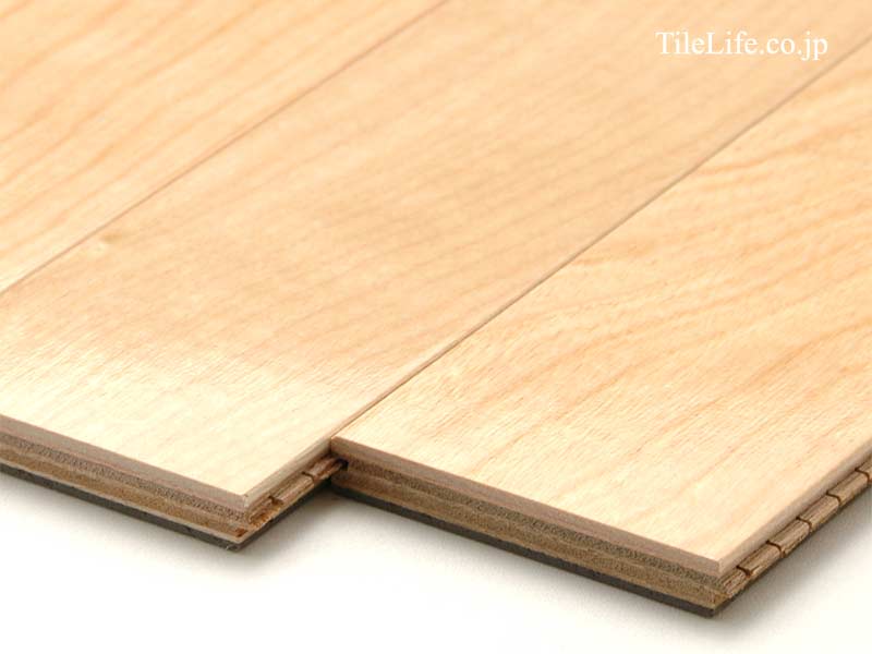 表面材は天然木の厚い単板を使用し、無垢材の質感と複合フローリングの安定した形状を両立したハイグレートな商品です、詳しくは「表面材の厚みによる違い」をご覧下さい。
