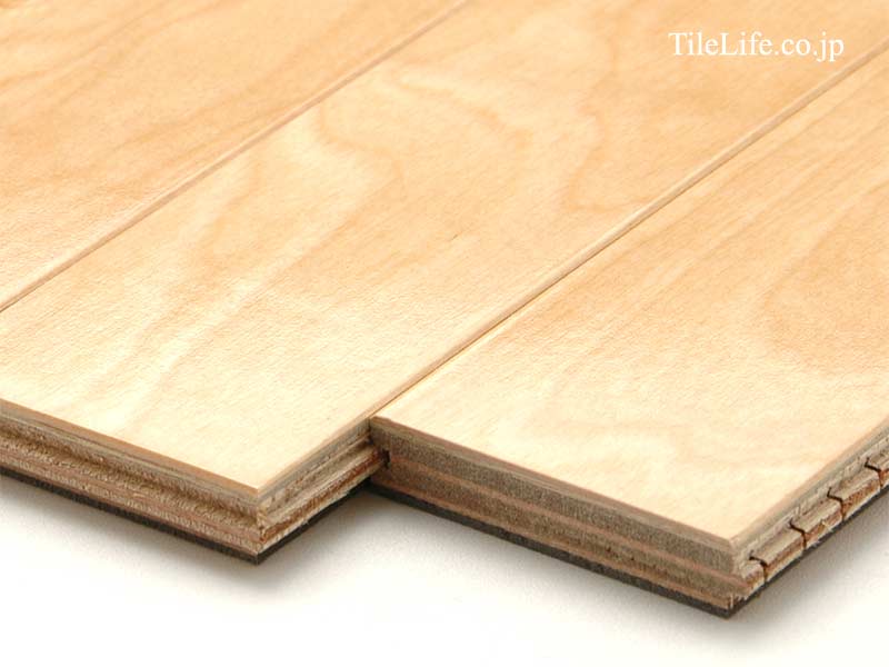 表面材は天然木の厚い単板を使用し、無垢材の質感と複合フローリングの安定した形状を両立したハイグレートな商品です、詳しくは「表面材の厚みによる違い」をご覧下さい。