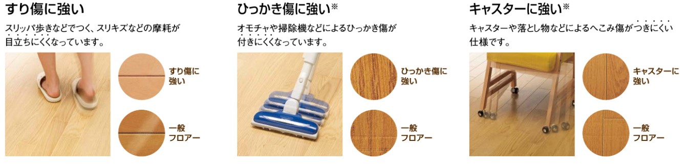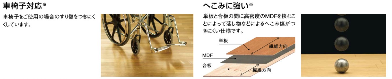 床暖房用へこみに強いキャスターに強いすり傷に強いワックス不要汚れがつきにくいホットカーペット対応車いす対応 |