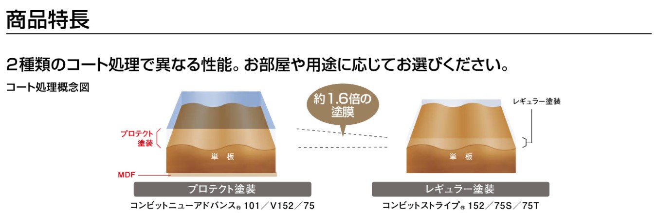 ・商品シリーズ名 : コンビットニューアドバンス101 ・色名 : ライトブラウン色 ・品番 : FKM377D-7-LB ソフトアートシリーズやLV階段ともコーディネートしやすい高性能な1×6サイズのフロアーです。 <商品の仕様> プロテクト塗装 <注意事項> ●床暖房対応床材におきましても長年の使用環境により軽微な割れが発生することがありますので、ご理解頂きますようお願い致します。 ●床暖房用発熱パネルは必ず指定のものをご使用ください。 ●隙間防止のため施工は釘・専用接着剤併用施工としてください。 ●エンドマッチ方向の雄実にも接着剤を塗布し、2ヶ所釘打ちしてください。 ●床暖房用床材は加熱により収縮し、隙間が発生することがありますのでご了承ください。 ●ホワイト色は光・熱・カーペット等により色が変化する場合があります。 ●ディープブラウン色等の濃色系のフローリングは、光やワックス等の艶の影響で傷が目立ちやすくなる場合がありますのでご了承ください。 ※数量が多い場合は分納になる場合がございます。