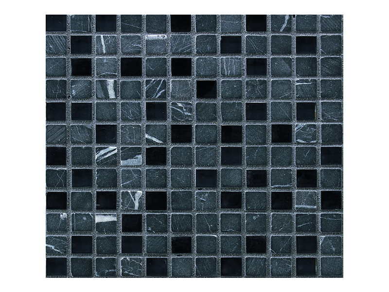 - ガラス&大理石ミックスモザイク パリーネ 15mm角ユニット 裏ネット貼り 04M
