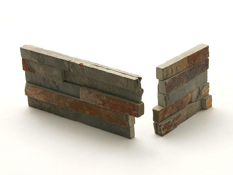 タイルライフのトップ石材役物石材 > 【最終処分セール】 壁用石材パネル 天然石ボーダー コーナータイプ マルチカラー系 55150TYK