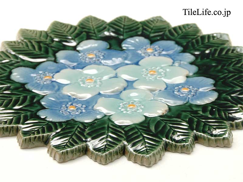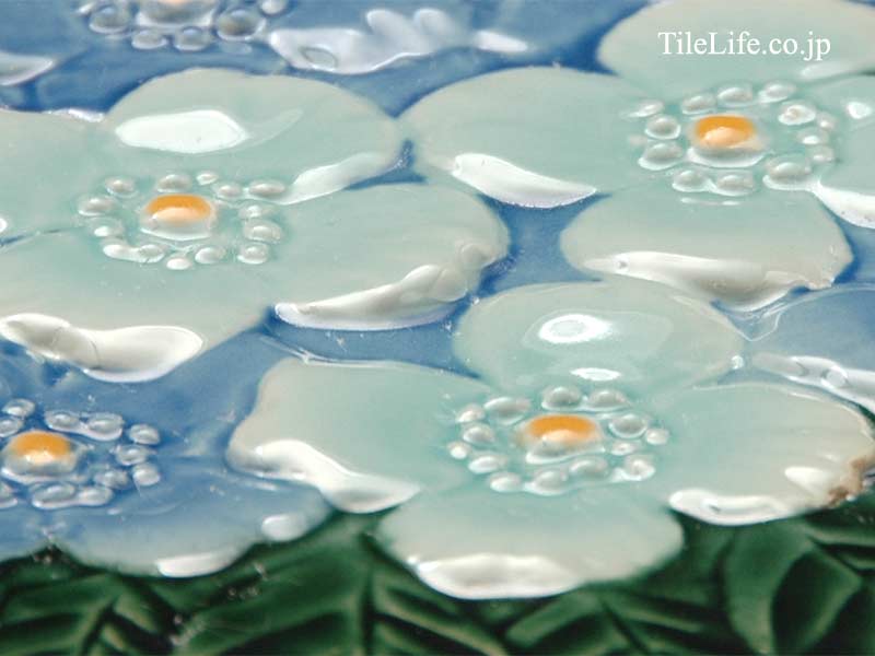 職人が1枚1枚手作りで成形し、手塗りをしたアートタイルです。