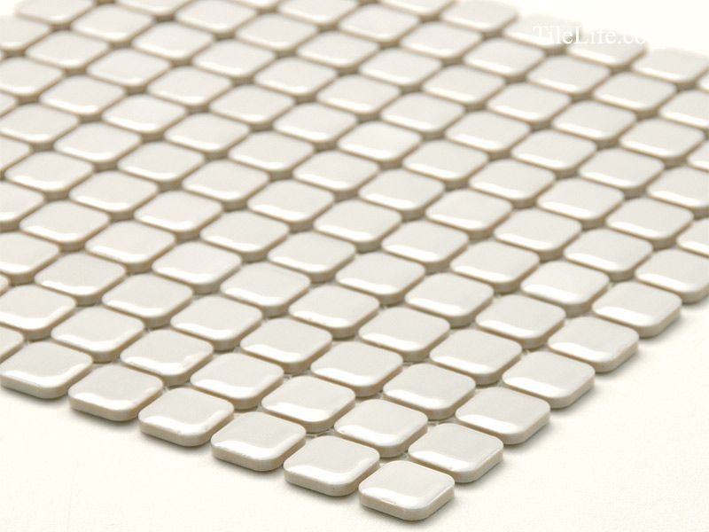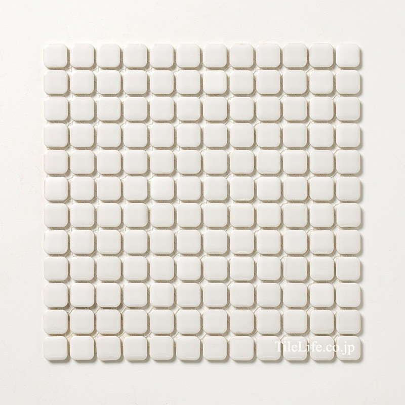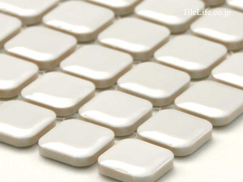 角丸の形状と表面のふくらみがソフトな雰囲気に仕上がるモザイクタイル。