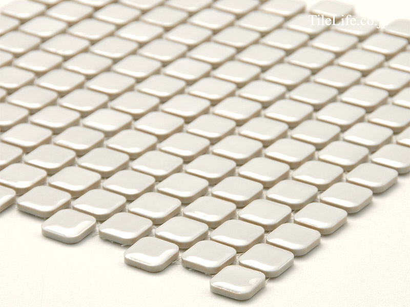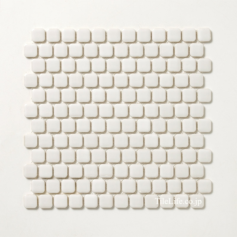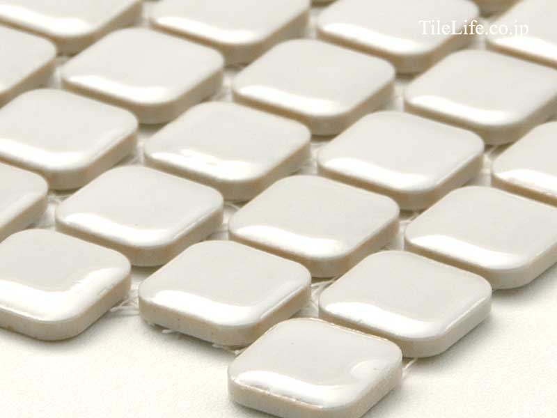 角丸の形状と表面のふくらみがソフトな雰囲気に仕上がるモザイクタイル。