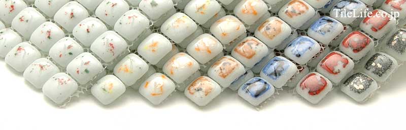 角丸でふっくらとした形状が可愛らしいガラスモザイクです。