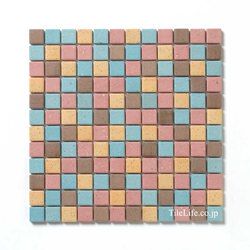- モザイクタイル 23角平 表面紙貼り 無釉 ミックス12