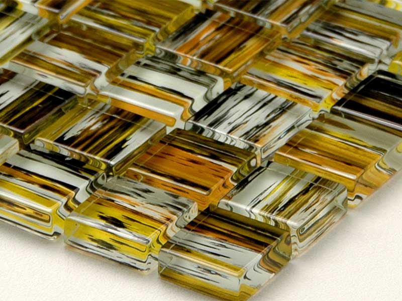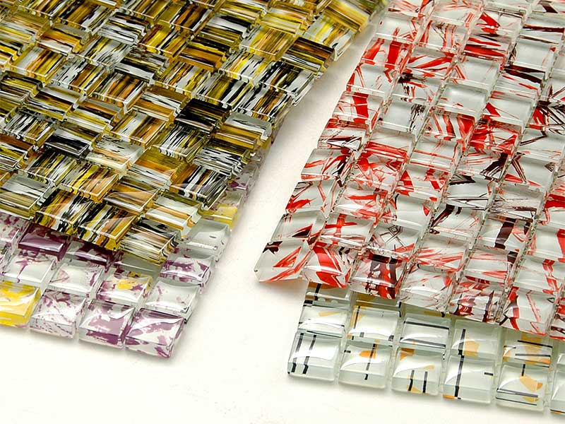 ガラス素材と模様の調和が美しく、現代アートの様な趣きあるデザインのガラスモザイクタイルです。 インテリアデザインとして飾るのもおすすめです。 <注意点> ●多少の寸法誤差がありますので、調整しながら施工願います。 ●下地の色を拾いますので接着剤は白色のものをお使いください。
