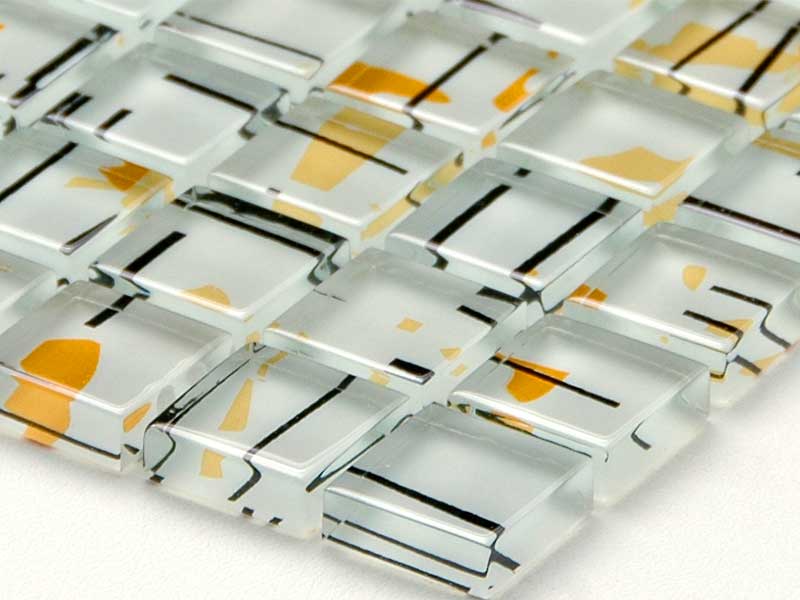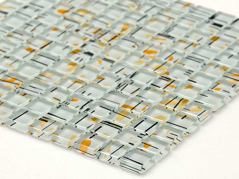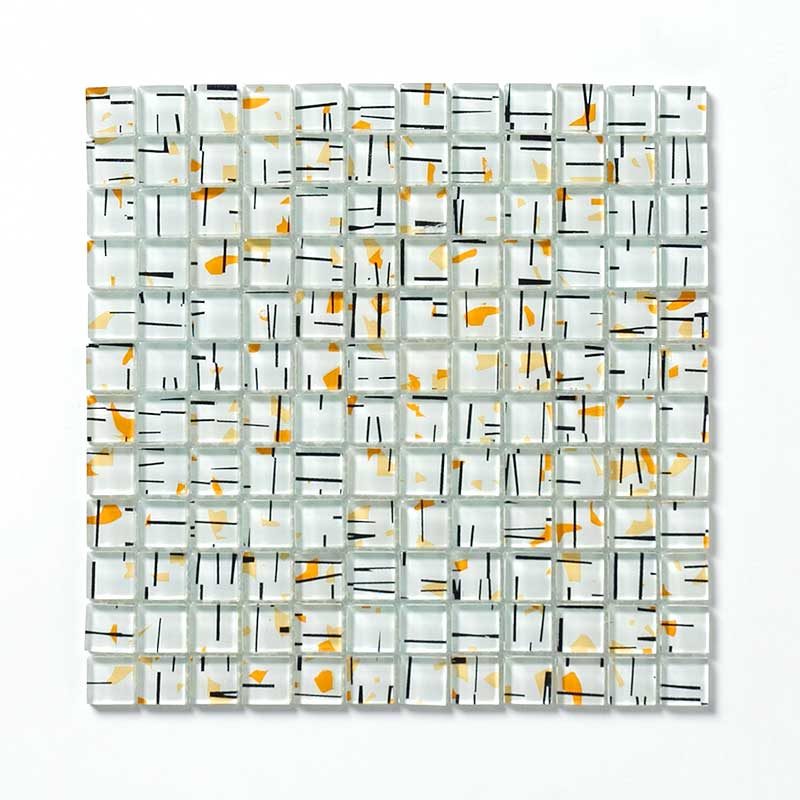 ガラス素材と模様の調和が美しく、現代アートの様な趣きあるデザインのガラスモザイクタイルです。 インテリアデザインとして飾るのもおすすめです。 <注意点> ●多少の寸法誤差がありますので、調整しながら施工願います。 ●下地の色を拾いますので接着剤は白色のものをお使いください。