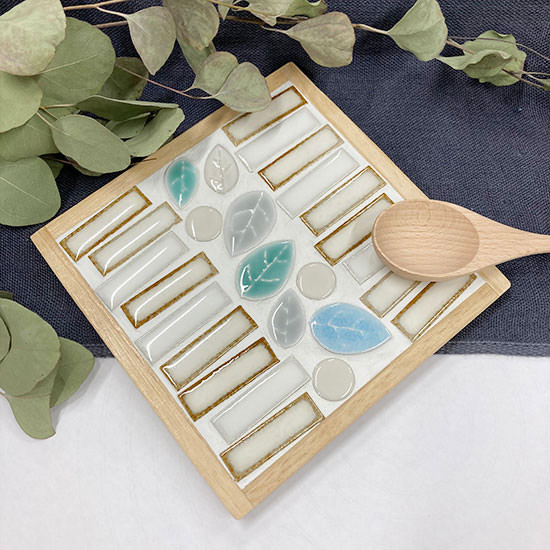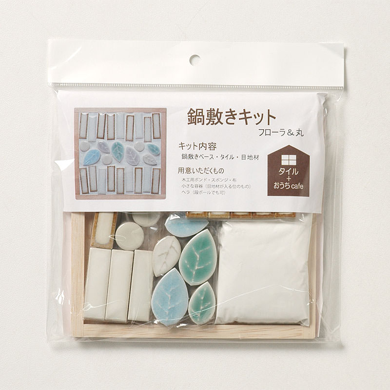 <詳細> ●セット内容:美濃焼タイル(見本写真と同じ)、目地材100g、木製ベース1枚、作り方レシピ ※見本写真と同じ鍋敷きを1枚作ることができるキットです。 (自由にデザインをアレンジすることもできます。) ●ご用意いただくもの:木工用ボンド、スポンジ(目地材拭き取り用)、布(仕上げ用)、ピンセット、小さな容器(目地材を混ぜるため)、目地詰め用ヘラ(段ボールでも可) <注意点> ●多少の寸法誤差があります。 ●ご使用のモニターによって色が実物と異なって見える場合があります。 ●目地材が付いたヘラやスポンジは、キッチンや洗面などでは洗わないでください。配管が詰まる可能性があります。 ●熱い鍋を置いてもタイルは変質しませんが、木枠は焦げて変色する事があります。 ●タイル誤飲防止の為、小さなお子様が作られる際は、必ず大人の方が付き添いをお願いいたします。
