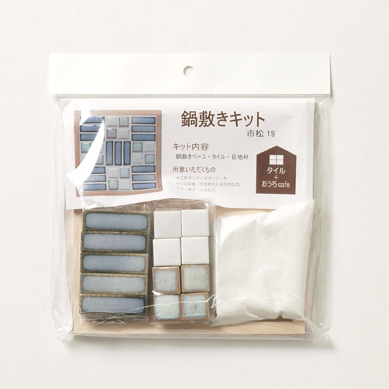 <詳細> ●セット内容:美濃焼タイル(見本写真と同じ)、目地材100g、木製ベース1枚、作り方レシピ ※見本写真と同じ鍋敷きを1枚作ることができるキットです。 (自由にデザインをアレンジすることもできます。) ●ご用意いただくもの:木工用ボンド、スポンジ(目地材拭き取り用)、布(仕上げ用)、ピンセット、小さな容器(目地材を混ぜるため)、目地詰め用ヘラ(段ボールでも可) <注意点> ●多少の寸法誤差があります。 ●ご使用のモニターによって色が実物と異なって見える場合があります。 ●目地材が付いたヘラやスポンジは、キッチンや洗面などでは洗わないでください。配管が詰まる可能性があります。 ●熱い鍋を置いてもタイルは変質しませんが、木枠は焦げて変色する事があります。 ●タイル誤飲防止の為、小さなお子様が作られる際は、必ず大人の方が付き添いをお願いいたします。
