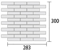 フラット面 サイズ:92×23mm 厚み:6mm レンガ張り目地共シート寸法:300×283mm 1シート:縦12枚×横3枚=36枚 |