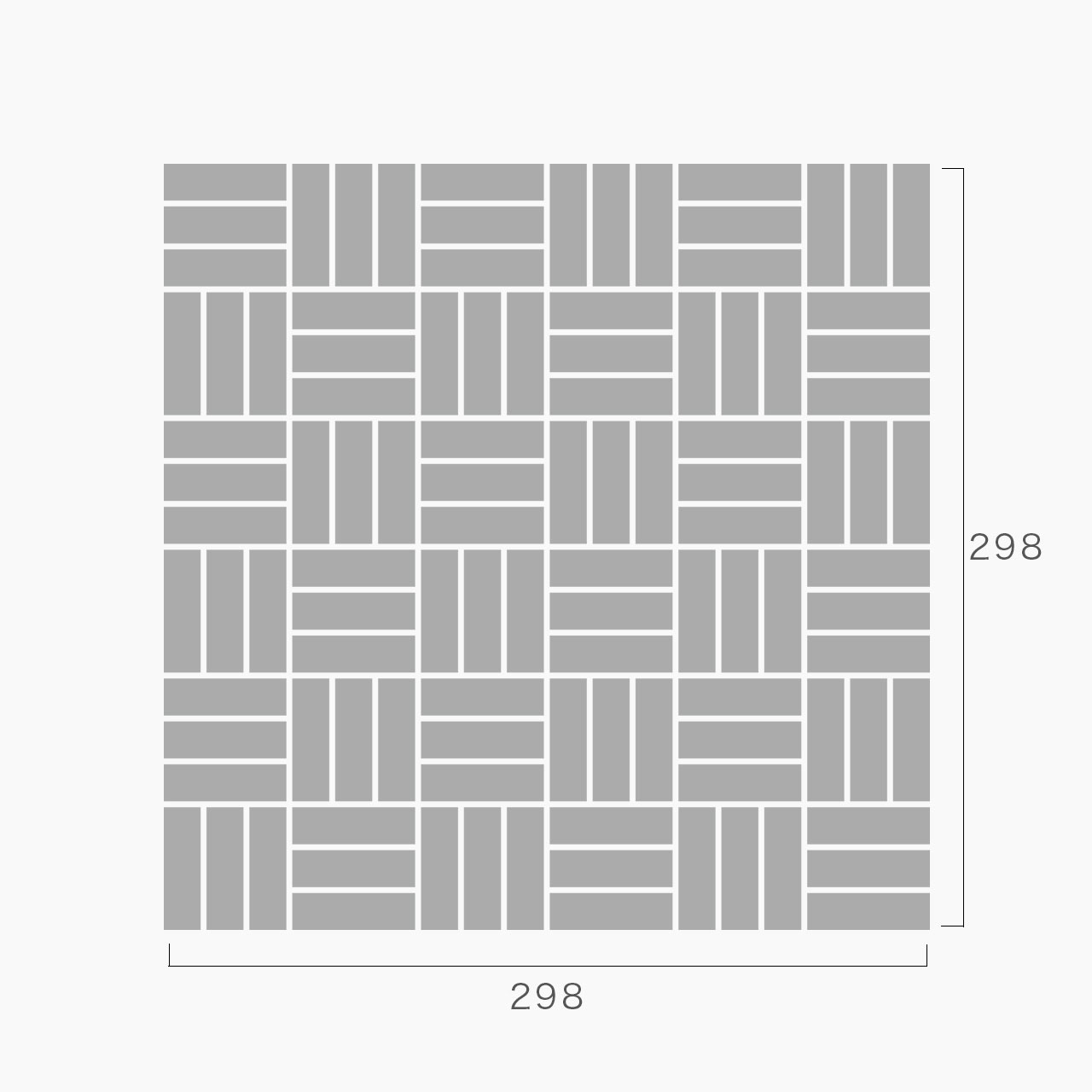 1シート:18×6枚 2.2mm目地 シートサイズ:298×298×t6 mm |