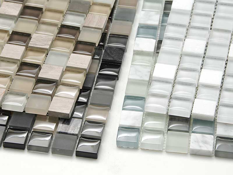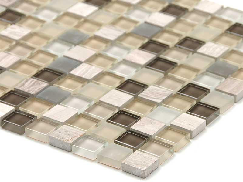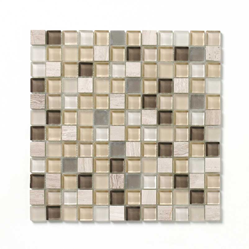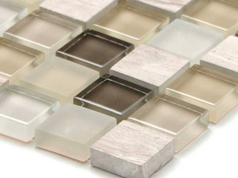 ガラスと大理石を組み合わせた、23mm角のミックスモザイクタイル。