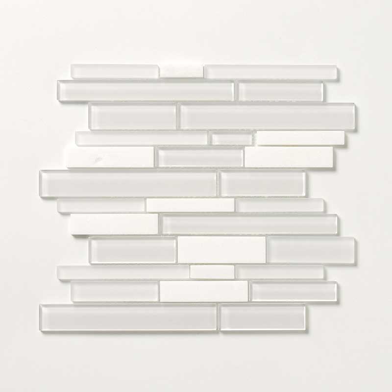 ガラスと大理石を組み合わせた、ボーダー形状のミックスモザイクタイル。