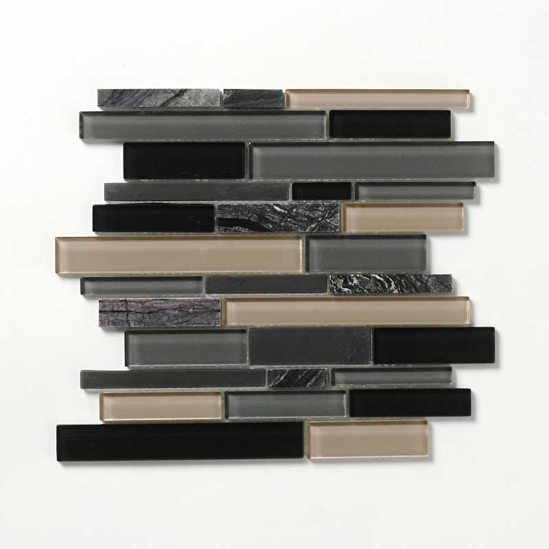 - ガラス&大理石ミックスモザイク ミックスボーダー 裏ネット張り ブラック系