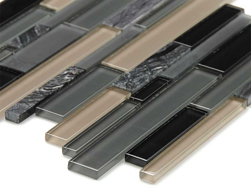 ガラスと大理石を組み合わせた、ボーダー形状のミックスモザイクタイル。