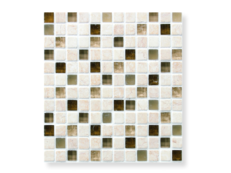 - ガラス&大理石ミックスモザイク パリーネ 15mm角ユニット 裏ネット貼り 02M