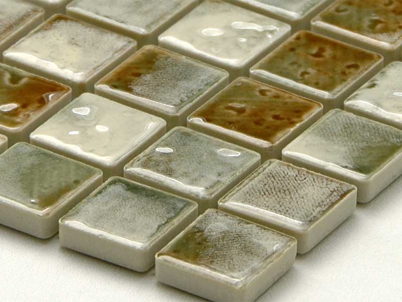 焼き物特有の味わい深い色が特徴的なモザイクタイルです。 <注意点> ●多少の寸法誤差がありますので、調整しながら施工願います。