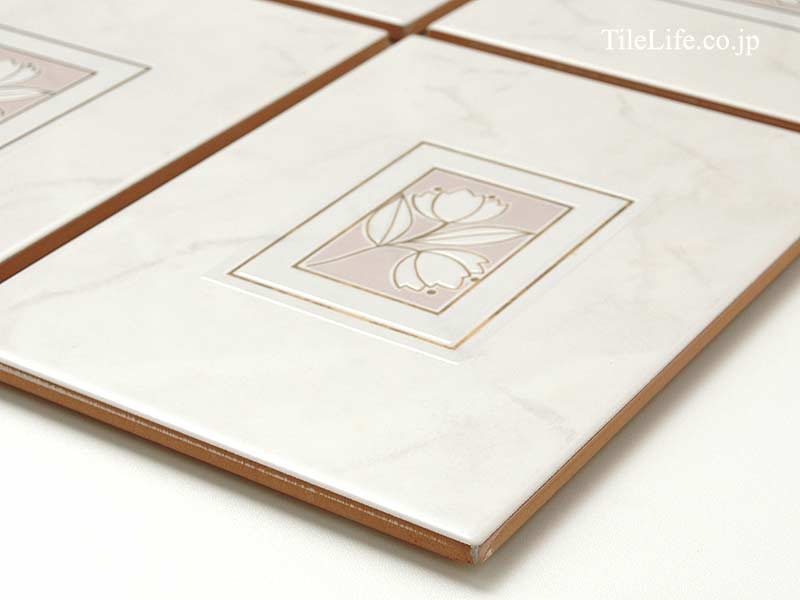 淡いグレー地に花のポイント柄がかわいいタイルです。 [ 製造国 : イタリア ] [ 出荷元 : 関東エリア ]
