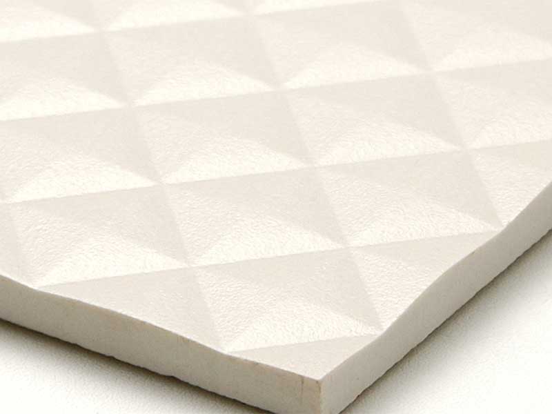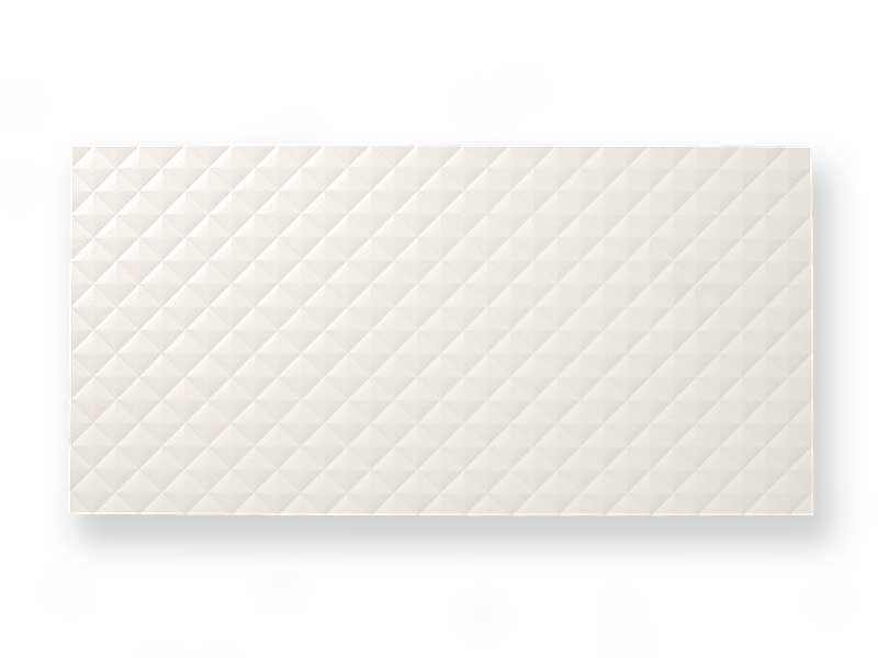 清潔感のある白い内装用タイル。 レリーフが高級感のある空間にピッタリです。 <注意点> ●多少の寸法誤差がありますので、調整しながら施工願います。