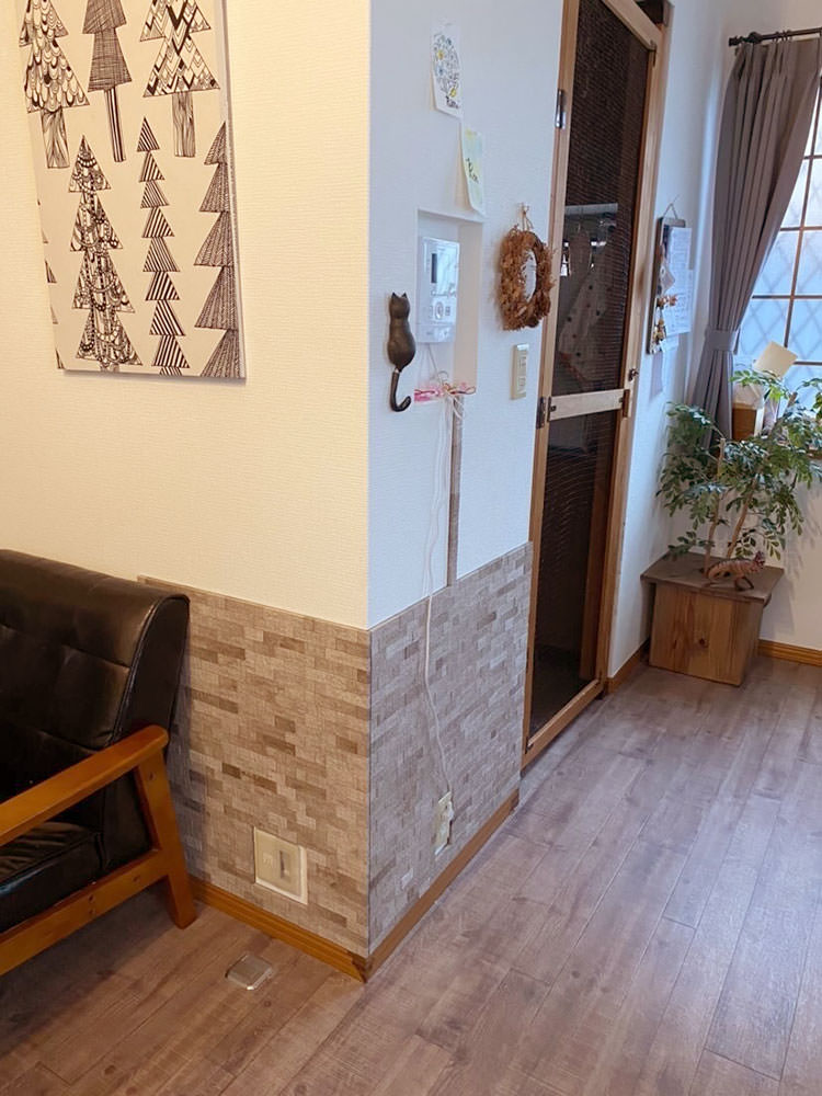 ブロック形状になっており、ベース材を両面テープで壁に貼り付けてブロックをはめていくだけと簡単で楽しく施工できます。