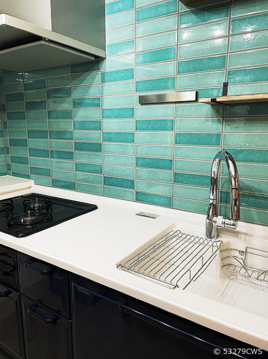 • 内装タイル:内装タイル 227×60mm角(二丁掛) 貫入あり ライトグリーン系(53279CWS)