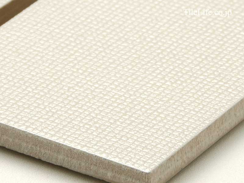 メタリックな釉薬でドット柄を施した豪華さがあるファブリック調(布地調)の内装壁タイルです。