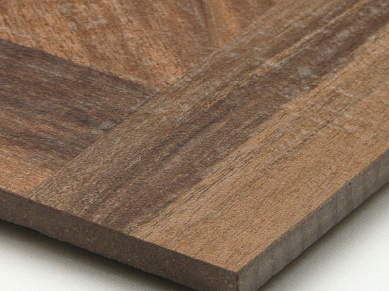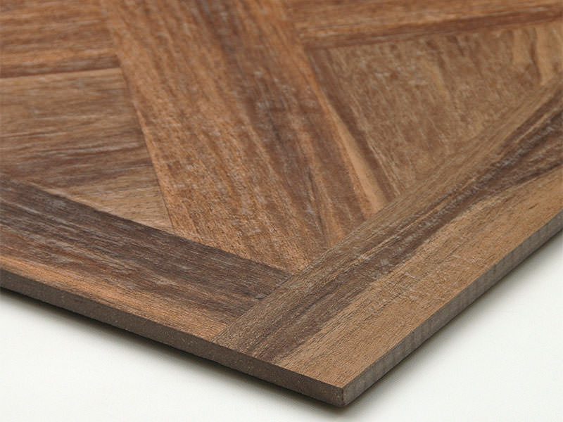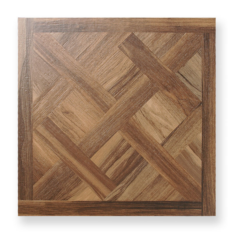 組木細工で木材を組み合わせたような木目調タイル。 750角と超大判で迫力があります。