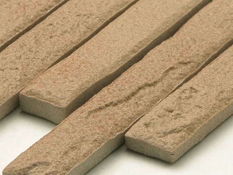 <特徴> ・軽量:特殊発泡原料のため、通常のタイルに比べ軽量 ・簡単施工:軽量のため施工が楽 ・質感:風合いが抜群で屋外にも屋内にも使用可能 <注意点> ●特殊発泡原料のため寸法、形状にバラツキが出ます。 ●色ムラ、色のバラツキが大きいのが特徴です。 ●施工は接着剤工法になります。モルタルでの施工はお避け下さい。 ●生産時や運搬時のこすれにより、表面に白い擦り傷がついている場合があります。 その場合は、ブラシや濡らした布等で拭き取ってください。
