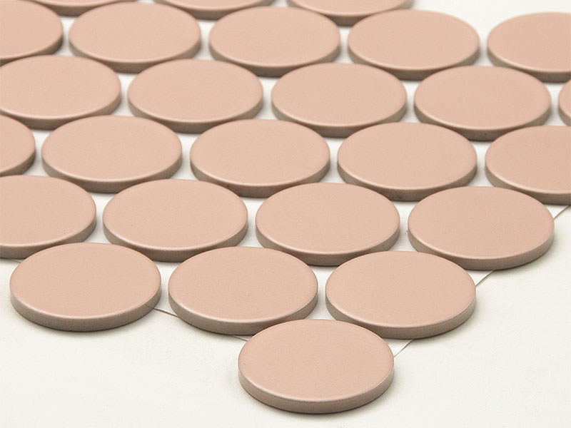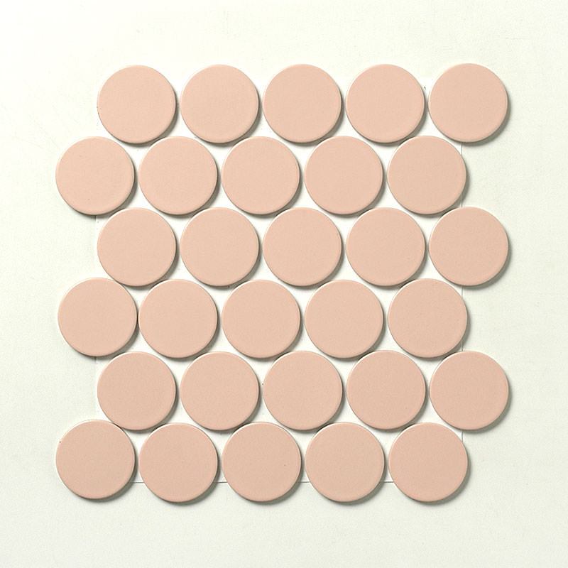 - 内装タイル 57mm丸 表面紙貼り マット ライトピンク系(10)