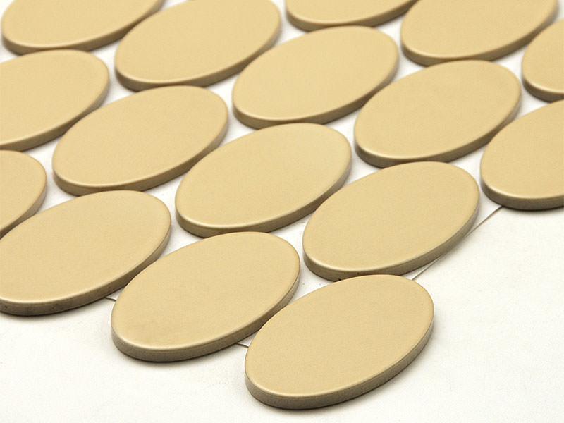 タイル実寸:97×57(楕円)×6mm 目地共シート寸法:347×300mm 1シート:4枚×5枚=20枚 ※多少の寸法誤差があります |