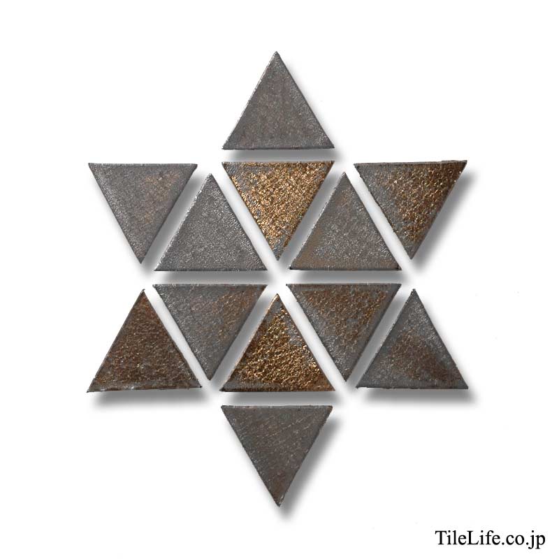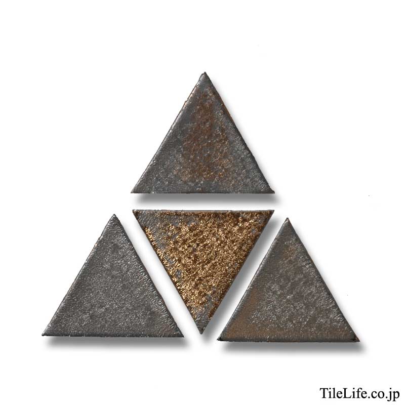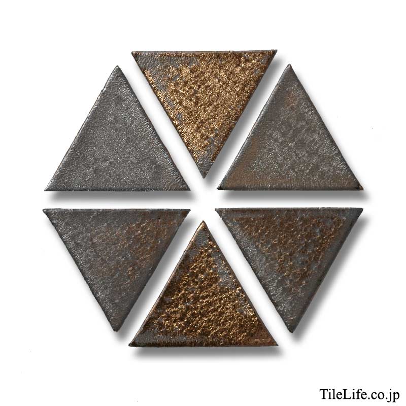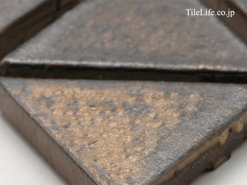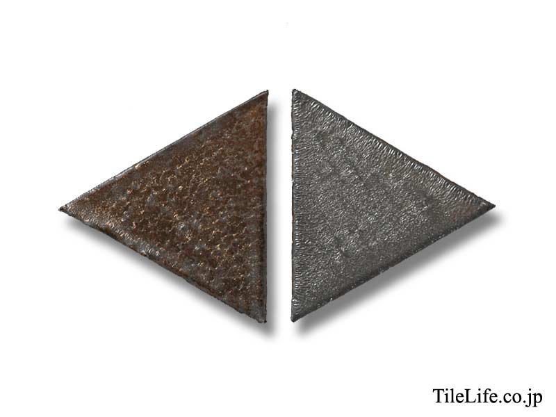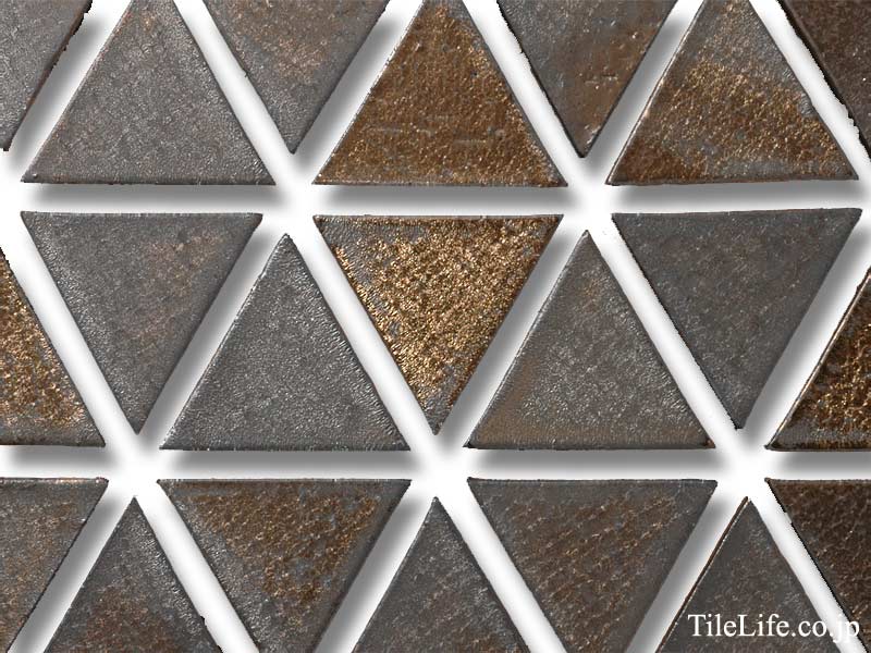 特異な三角形状に加え、見る角度によって多彩な表情を作る色調は一枚と同じものが無く、ハイグレードな空間を漂わせます。