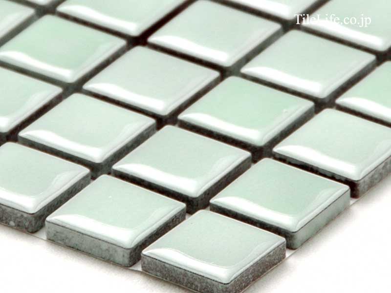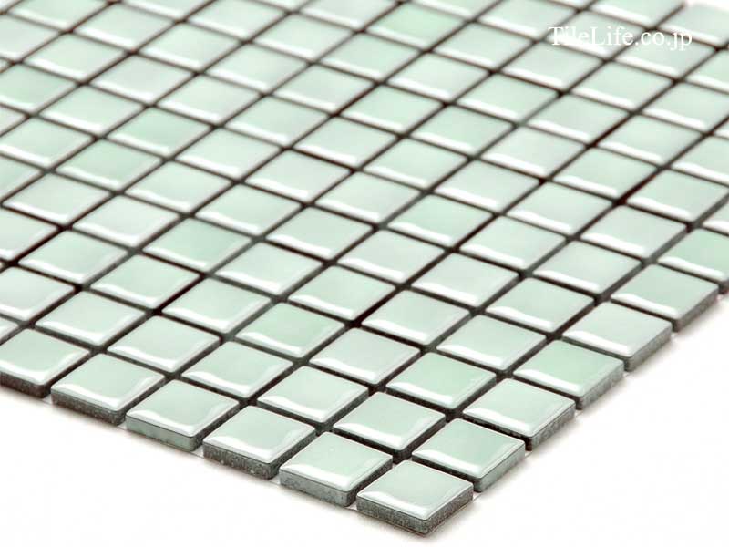釉薬が生み出す淡い色調とつややかな光沢が魅力の施釉モザイクタイル。